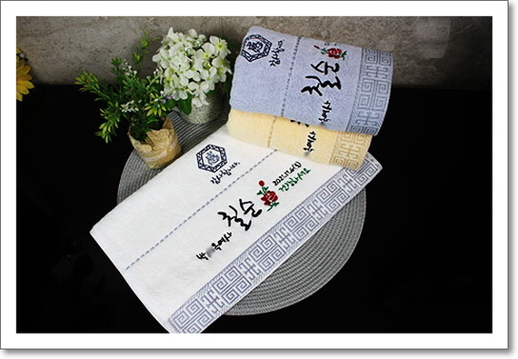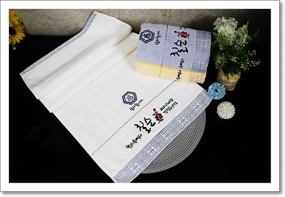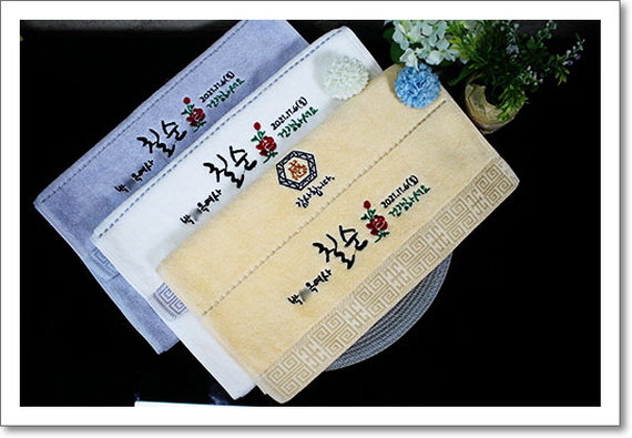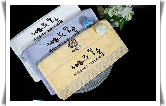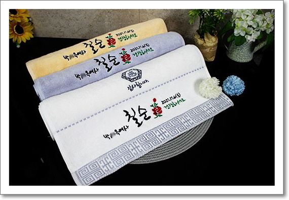 그 무명실로 만들어진 수건을 칠순잔치 때 답례품으로 기념타올을 제작후 나눠드리시고 오래 사용과 보관을 하시면 장수 하신답니다