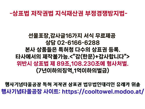 그리고 아무런 문구도 없는 무지타올을 종이곽에만 담아서 띠지나 카드 하나딸랑 넣어서 나가는것들은 고급수건이 아니고 100% 판촉용 수건 업소용무지타올 이기에 드리고나서도 욕먹는다~~ 라고 하는 수건이라서 하지 않습니다