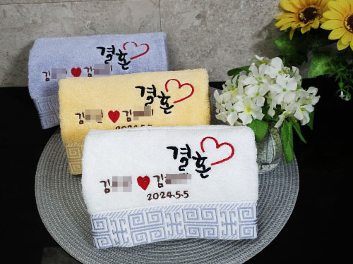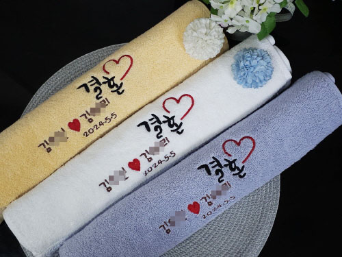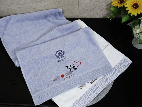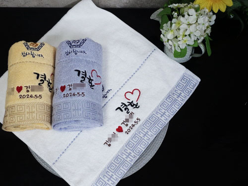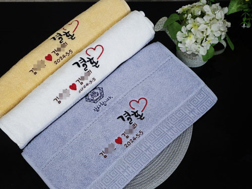 결혼수건답례품 문구 같은 경우도 상당히 인기 있는 수건 문구 이고