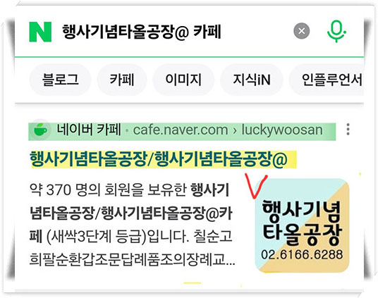 행사기념타올공장@ 카페 라고 검색을 해서 카페로 들어가는 경로 인데요~~