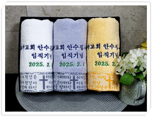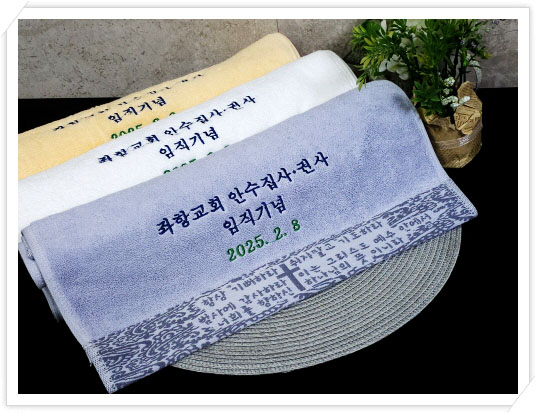 | 교회수건 임직식 답례품 장로 집사 권사 취임 및 설립예배선물 수건 (5) | 2025.07.29 |