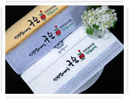 그러다 보니 싸구려 수건 이나 베트남/필리핀산 의 질이 떨어진 수건에 아버지 또는 어머니 성함을 넣어서 드리면