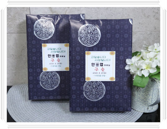 구순잔치 답례품 자수인쇄 문구 무료 + 개별 박스 포장 무료 + 개별 박스별 선물용포장지 포장 무료 + 구순 스티커 까지 전부 무료 이기에