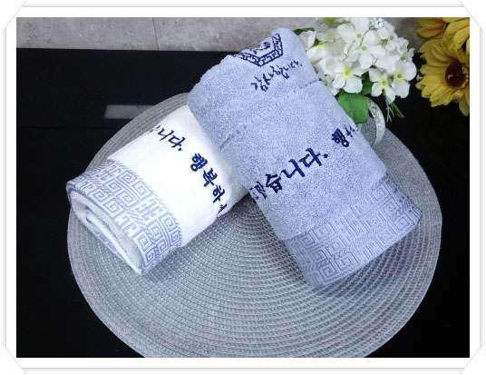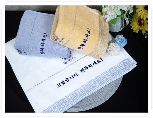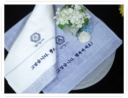 고열인쇄를 하더라도 지워지거나 희미해지거나 물빠지거나 변형이 오지 않아서 문구가 길고 많을 때는 자수인쇄 보다는 고열인쇄수건이 더 쓰기 좋습니다 ~~