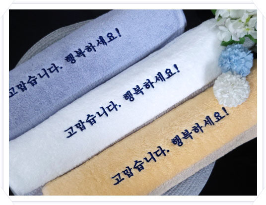 자수실이 특수실이기때문에 자수로 로고 나 기타 문구가 많이 들어갈때는 아무리 고급수건 이라도 하더라도