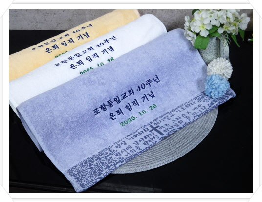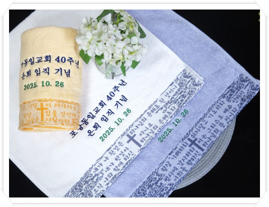 | 교회수건 임직식 답례품 장로 집사 권사 취임 및 설립예배선물 수건 (5) | 2025.07.29 |