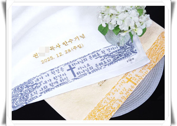 | 교회수건 임직식 답례품 장로 집사 권사 취임 및 설립예배선물 수건 (5) | 2025.07.29 |