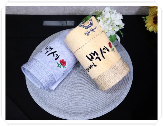 그리고 장수를 의미를 하는 무명실로 만들어진 디럭스 타올에 카네이션 자수 와 그리고 사랑합니다 또는 건강하세요 또는 행복하세요 ~!~ 이런 문구는 선택을 하면 되는데