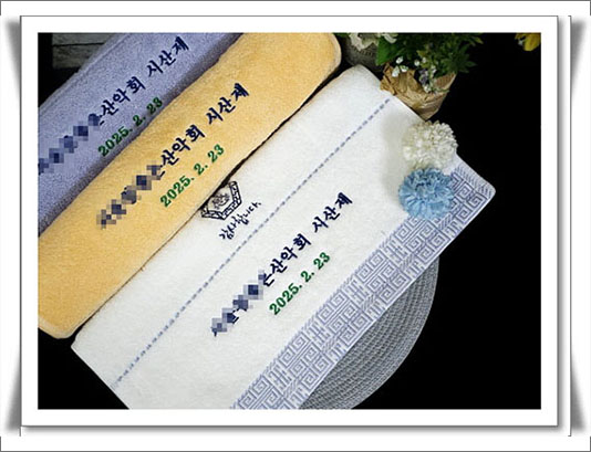 디자인도 그렇게 색상도 그렇고 만족도가 높은 수건이다 보니 시산제 선물로 가장 많이 하는 수건 이라고 보시면 됩니다