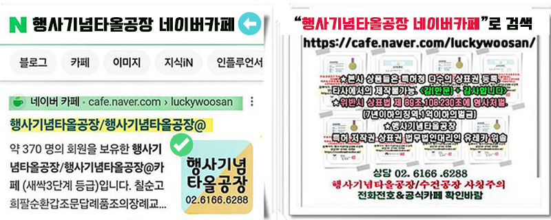 아래의 카페로 들어가 보시면 수건가격이나 제작 사례 후기들이 많이 있으니 안심하고 주문제작 이 가능합니다