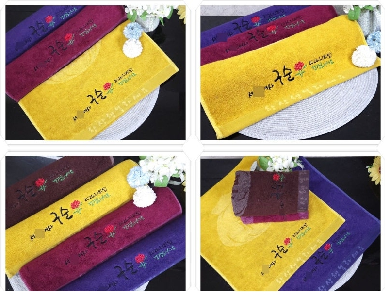 그런데 수건을 제작해서 선물로 나눠드리는데